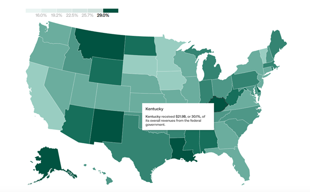 Kentucky ranks among the most federally dependent states for Medicaid funding.